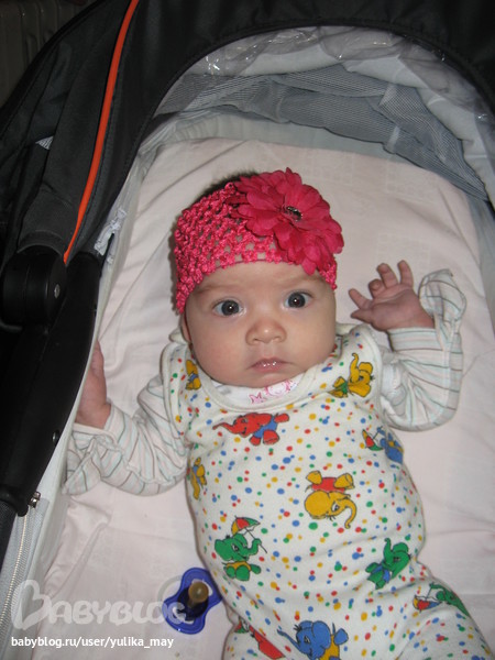 Прошел не заметно второй месяц жизни моей малявочки.На прием еще не ходили,погода не летная так что рост,вес не знаем.Смотрю на нее,такая взрослячка)))Голову держим уже хорошо и даже спинку пытается держать и довольно не плохо получается.Наконец-то мы поняли для чего нам руки когда лежим на животе)))