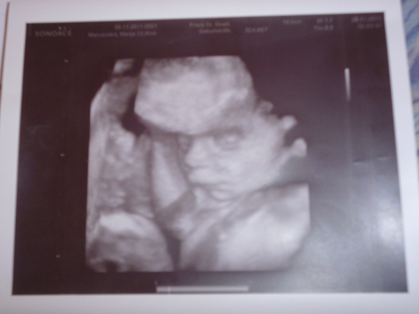 Макс, 24 недели. Улыбается, хорошо у мамы в домике:)