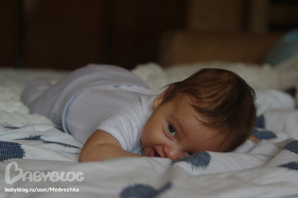 Дочка как видит фотоаппарат, сразу улыбается. Здесь нам 7 месяцев.