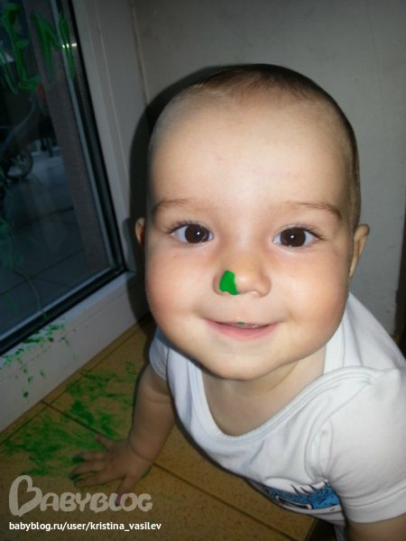 Еще,Кстати,мы запробовали пальчиковые краски. Богдану ооооочень понравилось. В рот не тащил,потому как я непрерывно бдела,но,наверное,пока надо сделать их самой.