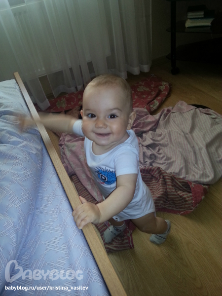 Девочки, вот реально мне стало в сто раз легче, когда малой пополз :) Последние 2 недели я просто кайфую. Бо,по-моему,тоже. Он может передвигаться где хочет и как хочет. Вчера оторвал обоину,которая не ровно висела, потом поплескался в унитазе. Везде встает. Правда, синяков у нас решительно прибавилось. Каждый день что-нибудь новенькое. Я просто кайфую от своего перчика. Жаль, папа не дождался этого облегчения.