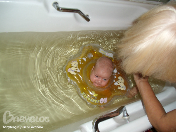 - плаваем в ванной с кругом на шее