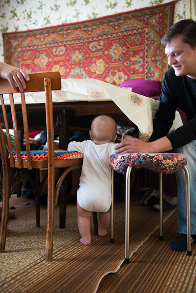 - ползает). Сначала ползал как бы сидя, смешно подволакивая вторую ногу. Но совсем недавно стал ползать нормально, и теперь изучаем квартиру)) - заползает уже в соседнюю комнату, на кухню. В гостях у прабабушки самостоятельно перелез через высокий порожек;