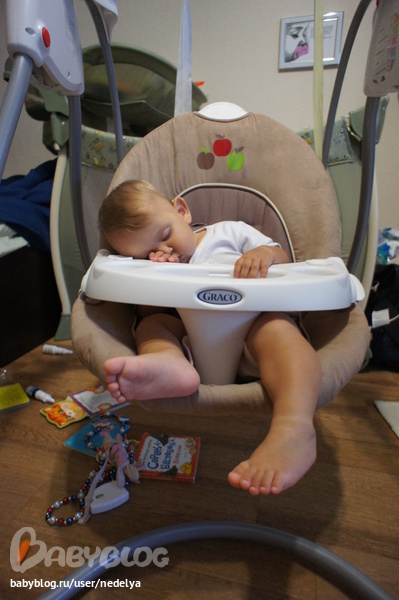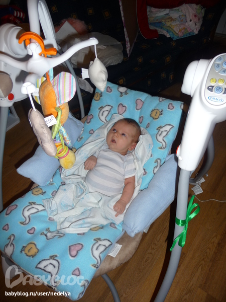 Клево) У нас днем пока спит не ахти, капризничает и срук не хочет слазить. Если полюбит качельку, она, конечно, шибко выручит)