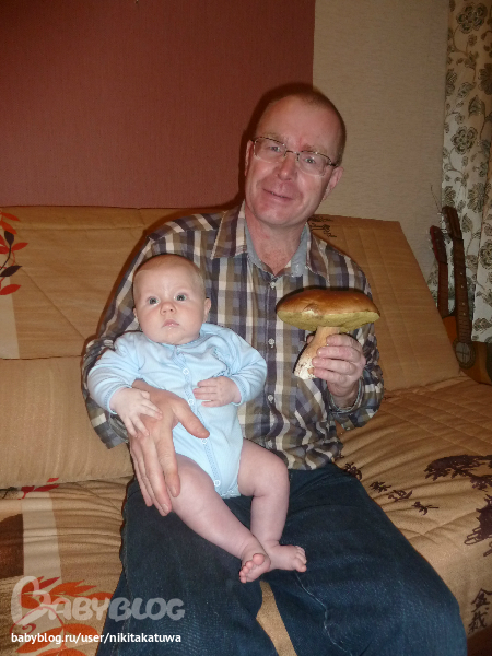 Дедушка у нас конечно просто чудесный)) Он и с нами (со мной и братом) всегда занимался гимнастикой, играми, книжки читал... А со Стёпой это просто что-то невероятное. Съездил в лес, привез ему грибов разных, показывал и рассказывал "вот это белый, а это подосиновик". На следующий день съездил на рыбалку, привез окуней и показывал ему рыбок)))))))) И все время когда дома, носит его на руках, они смотрят в окно на проезжающие машинки и автобусы и летают под потолком как Карлсон))))