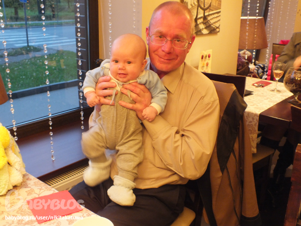 В первый день, когда мы приехали конечно немножко попереживали - все новое, лица новые, стены новые. А мы же привыкли только к папе с мамой и своей квартире. Но уже на второй день мы со всеми познакомились (заново) и стали улыбаться во весь рот))) А трехмесячинку мы отметили в ресторанчике с бабушкой и дедушкой!)