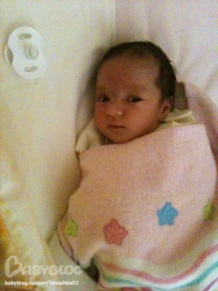 1. Фото из роддома. Алинка еще немного припухшая и смешная.