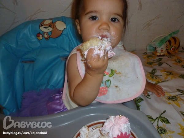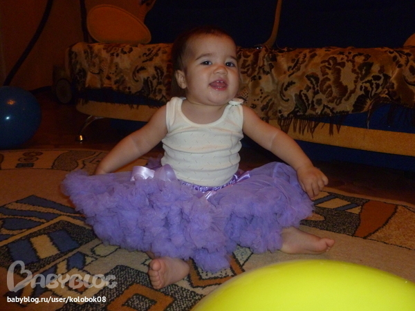 Уже годик. Наши выпускники30.09.2012 моей Варюше исполнился один год! Уже год! Целый год! Весит моя "гномелла" аж 8300кг при росте 68см! Умеет лихо залазить на диван и слазить с него! Говорит "мама", "папа", "баба"... Ой, а так прикольно пытается надеть на ногу носочек или свой ботиночек!.....Ходит с поддержкой! Самостоятельно делает лишь несколько шагов и... садится на попу и дальше ползет! Пьет из кружки, а ложкой только играет!... Кушает все! и, порой кажется, что и сколько не давай - дочь будет есть! А еще Варюшка очень любит купаться! даже под душем! На горшок ходит, но еще не просится. Люблю ее, маю малышку! Отпразновали годовасие очень скромно в узком семейном кругу!... Папа наш утречком, после фотографирования, после чая с тортом, уехал на вахту.... Вечером приходила подруга с сыном, мы делали детям коктейли молочные! Вот немного фото!: