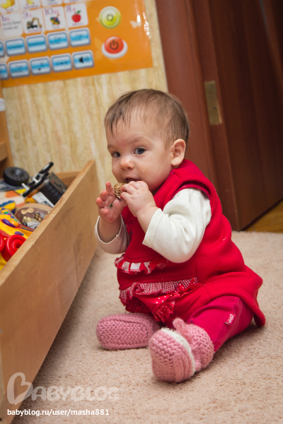 Мы встаем везде, сидим и садимся сами, ползаем как электровеники, уже пытается везде залезть и все скушать.