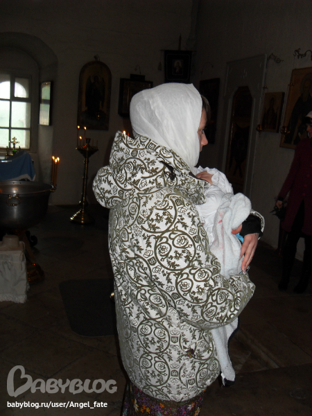 Мы покрестили нашу кроху!!! Само таинство происходило в храме Благовещения Пресвятой Богородицы (Антониево - Сийский монастырь) Так как имя Диана не является православным, мы крестились под другим Именем - Домнина. Еле запомнила это странное имя. Прошло крещение практически хорошо, только когда батюшка головушку обмывал, она у нас заплакала. Ну и вчера когда мы ездили на беседу в монастырь перед крещением, она тоже плакала.Место ей не понравилось. Да и от нашего города 150 км ехать..ей видимо тяжело было..но ничего, мы справились и теперь мы крещенные!!