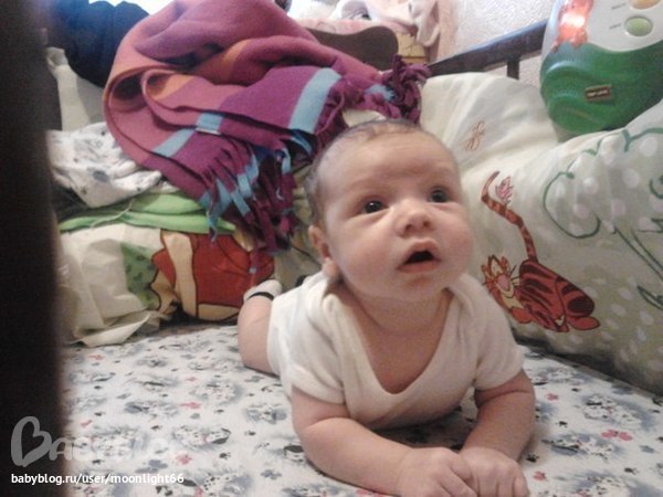 да он у нас молодчинка) уже даже делает попытки со спины на животик переворачиваться. но пока только на бочок.дальше никак)