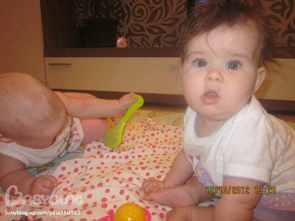 Рост, весСходили на прием к врачу в 6 месяцев Злата весит 7200, рост 67 см, крошечка моя, все никак не могу привыкнуть к такому маленькому весу, ведь сынок уже был в это время 10 кг, что мы умеем: хорошо сидим, без поддержки, хорошо знаем свое имя, играем долго игрушками самостоятельно, не умеем ползать(( и что я еще очень долго добиваюсь, но пока безрезультатно,это лаладушки, она улыбается мне когда я начинаю запевать, прыгать перед ней, хлопать как клоун, но сама пока не хочет хлопать в ладошки. Режим у нас конечно вообще ОТПАД: засыпаем с 12 ночи до 2 ночи, просыпаем в 13.00 и в течении дня еще спит 3 раза по 3,2 и 1 часу, вот такие делишки, а это наши пол годика с друзьями