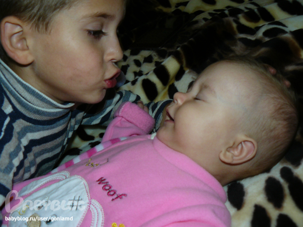 Классные детки! Классная мама! Рада что разобрались в отношении к сыну и дочке, это важно. Миленочка на последней фотке смешнючая))Отмечать полугодие будете?