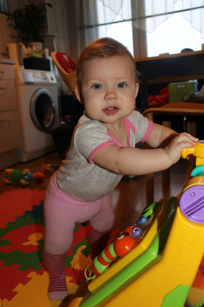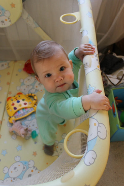 Режим наш слегка сбился из-за неожиданной болезни на той неделе - подхватили где-то "розеолу". Это была наша первая серьезная болезнь с высокой температурой. За время болезни стали очень капризными, много плакали, не вынимали пустышку изо рта и постоянно просились на ручки к маме. Очень переживала я, что она к этому всему привыкнет, но сейчас вижу, что все-таки можем обходиться без пустышки и маминых ручек.