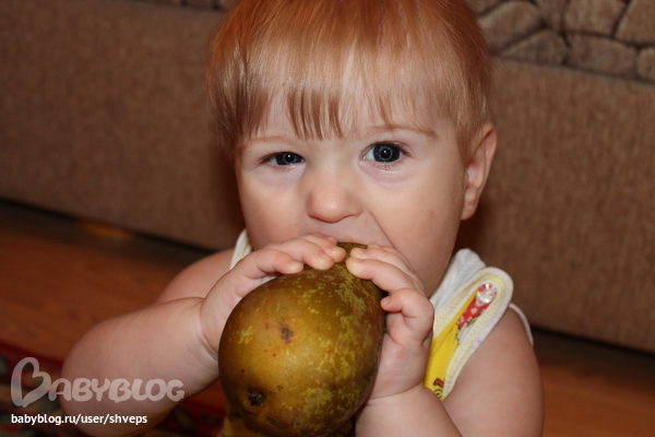 Объектом вожделения становится все, что есто кто-либо из членов семьи! И неважно кислое, сладкое, соленое, горькое... Все равно! По мере возможности дозирую... Так же стараемся удержать правильность питания. Очень озорной мальчик у нас получился.))) Глаз да глаз! Обожает кухонные шкафчики и шифоньер. Вытащить бутыль с растительным маслом, пакет с крупой или мамин бюстгалтер из шкафа-высшая награда! В связи с чем все в доме на крючочках и завязочках (иногда спасает). Играет в "ку-ку" уже сам. Может взять какую-нибудь тряпочку или полотенце и закрывать этим лицо, а потом резко отдергивать, при этом маме надо непременно с удивлением говорить "ку-ку" (деть в восторге). По-прежнему, любит "ладушки", "сорока-воровка" (умильно сосредоточенно водит пальчиком по ладошке, но пальчики пока сам не загибает, над этим работаем). Словарный запас: "мамам" звучит постоянно, особенно когда я теряюсь из виду, "папа" редко и под большим вдохновением, "баба" активно использовалось, но постепенно исчезло за ненадобностью после приезда от бабушек-дедушек, недавно освоили "бух", говорит когда что-то падает (иногда получается "бух, иногда "бу"), но смысл тот же. в общем болтун еще тот! Невролог определил опережение в развитии благодаря нашей болтливости. Мама говорит, что я сама начала говорить очень рано, а вот папа наш только после года. Так что сынуля, видимо в меня... Ползает очень быстро, иногда приходится догонять бегом! А, вот, ходить не хочет, даже за ручки. Падает на попу и все! Да, я и не настаиваю, придет время-пойдет. Не хочет пить из кружки, никак! И сам кушать не хочет, даже не пробует...Бабушка научила играть в мячик. Подкатываю ему мячик, он берет его в ручку, поднимает и разжимает. Буквально позавчера начал танцевать, ржака такая )))))) (видео выложу отдельно). Еще нарочно вставляю ему соску не той стороной, Никита ее тут же вытаскивае, внимательно смотрит и переворачивает правильно. Так забавно! Вообще за этот месяц он очень много научился делать. Заметный скачок!