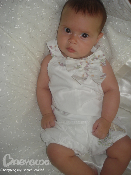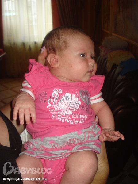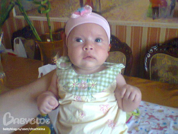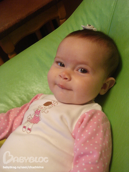 Особые навыки: Неплохо сидит, издает своеобразные звуки, мило улыбается, громко хохочет. В совершенстве владеет искусством очаровывать родителей, а также бабушек и просто всех, кто приходит к ней в гости.