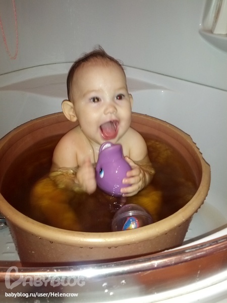 Купание в тазике тоже доставляло неумоверное удовольствие Марго!