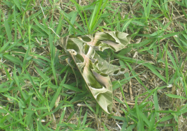 Рука не поднимается его бабочкой назвать. Размером он почти с ладонь взрослого человека. И еще меня удивило очень то, что он такой непуганный. Мы его и веточкой трогали и близко подходили - ноль реакции. Возможно, потому, что у него окраска такая защитная.