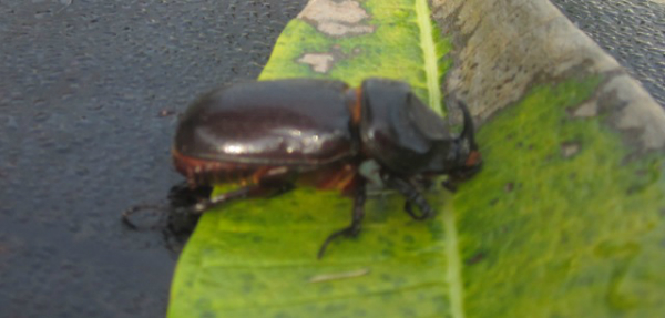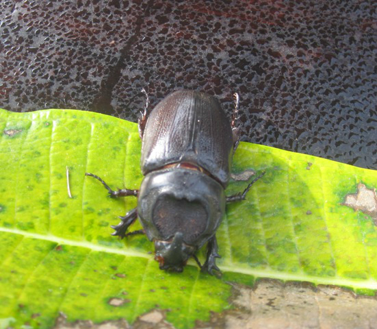 Безобидный такой жук. Вообще они умеют шипеть. Да так страшно, что даже вооруженным какой-нибудь палкой к ним подойти страшно. Но этот был спокоен и молчалив. И даже дал себя на листике отнести на столик и соблаговолил сфотографироваться на память. Хотя они и летать умеют. Вообще невозмутимость всех этих персонажей меня поражает!