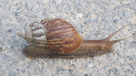 Этих улиток я встречала на дороге, когда гуляла утром по окресностям нашей деревни. Они переползали дорогу и рисковали быть раздавленными автомобилями и мотобайками. О чем свидетельствовали тут и там попадающиеся их распластанные тела. Я даже предпринила рейд по спасению улиток, перенося их на травку. И только через несколько дней я узнала шокирующую правду про этих слизняков. Оказывается, они выползали на дорогу вовсе не для того, чтобы перейти на другую сторону. Они шли на добычу пропитания! А именно: они жрали своих раздавленных сородичей вместе с панцирями! Это открытие как-то охладило мой пыл по их спасению и я предоставила их их собственной судьбе. А потом еще узнала, что если нечаянно коснуться их слизистой части (то есть тельца), то будет сильное раздражение. Наверное, эта кислота и позволяет им переваривать в том числе панцири. Надеюсь, вы, читая этот пост ничего не жевали :)