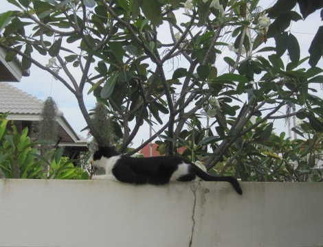 Ну и напоследок, хочу рассказать вам про кошку. В наружности этой кошки нет ничего необычного. Кошка как кошка. Но вот повадилась она к нам ходить. Иногда по несколько раз в день захаживает в гости. Как будто медом ей тут намазано. Это при том, что: кормить мне ее абсолютно нечем (мы не едим то, что едят обычно кошки, а на соевое молоко она не польстилась, как и следовало ожидать), мы ее не гладим и в дом не пускаем. И я вообще кошек не люблю, у меня на них аллергия. Вот зачем она ходит???