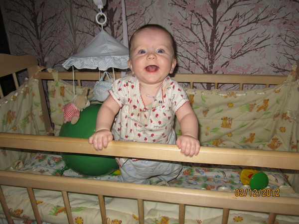 А сегодня вот новая умелка. Сажаю в кроватку, а она берёт и встаёт, и так весь день. отойти боюсь, ещё упадёт