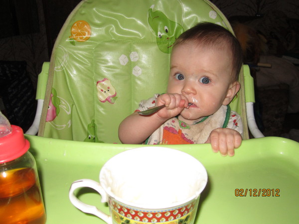 Теперь мы можем сидеть в стульчике и кушать, прям как большая)))))