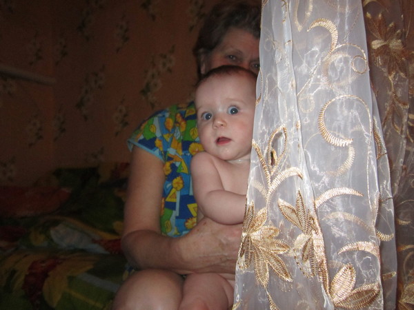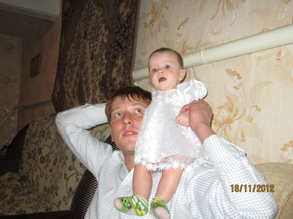 Хвастаемсяк нашему любимому папочке))) Жил он без нас две недели.Уехали креститься на несколько дней, а задержались надолго))) Как же я хорошо отдохнула в деревне, рядом с мамочкой. Столько всего случилось за это время))))))) выложу пожалуй много фото Кому интересно Крестились мы в старинной деревенской церкви, Валечка молодец, не плакала, а все полтора часа крутила головой))) Но даже в таком месте нашлись люди, которым надо влезть не в своё дело!!!! К нам подбегали!!!! женщины и бабушки с криками!!!!! оденьте немедленно ребёнка, она у вас заболеет! Просто она была одета в платье,и почему то все посчитали, что это кошмар, хотя было тепло. Мы даже ушли в самый дальний уголок, пока ждали, но они бежали (я не преувеличиваю) за нами. Вобщем, я была к началу крещения довольно таки злая