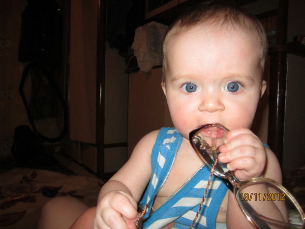 Ещё у нас вылез зуб (23.11.12), совершенно неожиданно я его обнаружила, просто решила заглянуть в ротик (интуиция???)))))), а сегодня (2.12.12) нашла второй
