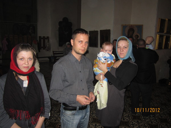 Я и крёстные, Валюха уже завёрнута в одеяло, после купели