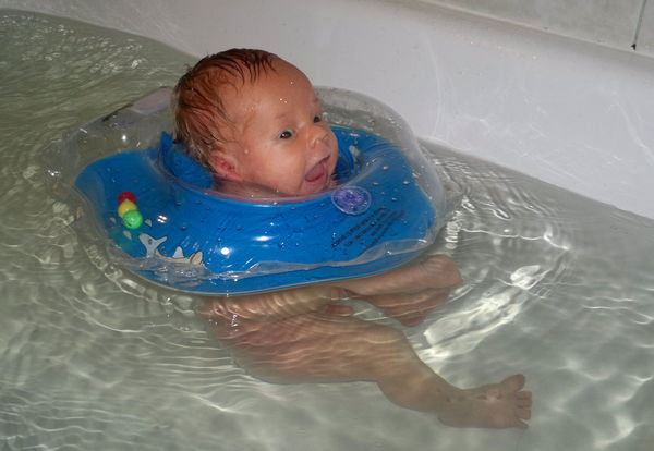 Бассейн и водные процедурыОказывается надо было в свободное плавание выпустить нашего парня со спасательным кругом на шее.В маленькой ванночке он никак не хотел купаться-плакал, дергал себя пальцами за кожу, потом орал после водных процедур пока сиську в рот не сунешь. Вот посмотрите!