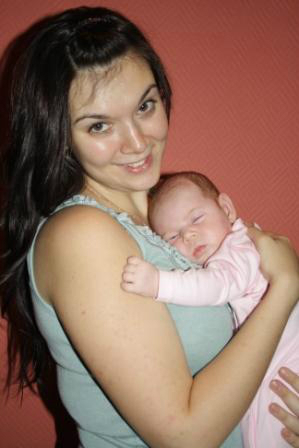 на мужа похожа она ведь? на фотках как будто рыжая))) на самом деле нет, волосы темные как у нас,только глаза светлые, серо-голубые, может быть еще позже станет как мы кареглазка)