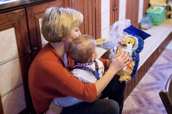 с моей мамочкой и любимой бабушкой разглядывают подарок