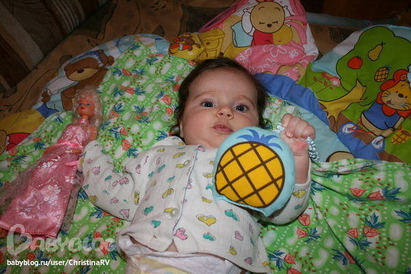 - 8 декабря первый раз перевернулась с животика на спинку! И ей по ходу понравилось! Так и вертится!