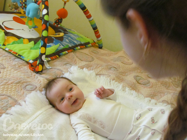 Наша Анечка много улыбается, чему мы очень рады) смеяться пробует, но пока не получается) Каждое наше утро начинается с улыбки! какое же это счастье - просыпаться, наклоняться к ней. А она тебя как только видит, тут же расплывается в своей искренней радостной улыбке!!!