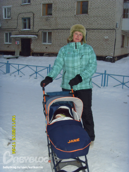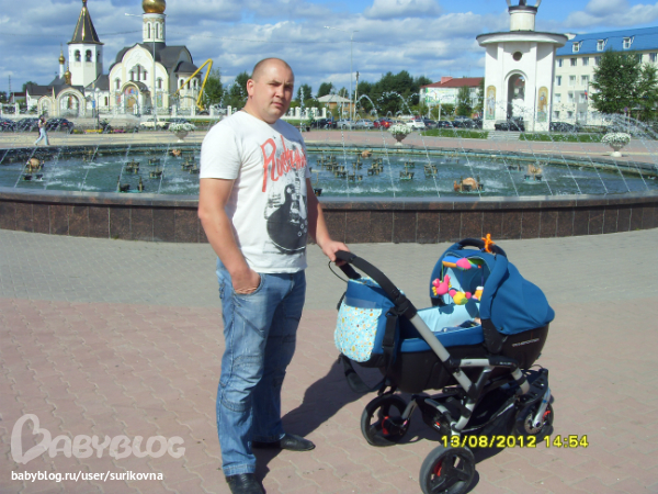 Ну а это наш основной транспорт. Удобная термо-люлька, но ткань-промокает сразу же, дождевик неудобный, громоздкий, место много занимает. Пересели уже в летний вариант. (делается лицом к маме и наоборот)