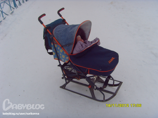 А такие сани папа нам соорудил из коляски среднего. Очень удобно) Осталось только низ покрасить