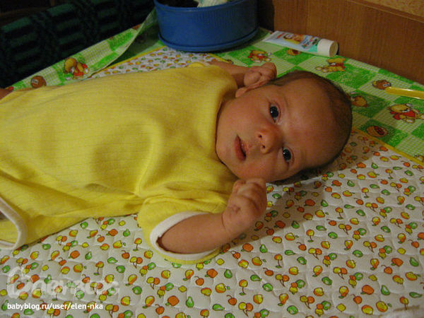 Это нашему сокровищу всего 1 месяц! Прибавили мы целых 2240 г,выросли на 6 см -богатырь теперь)))Очень любит когда поют песенки,особенно когда это делает наш папа.Просыпаемся каждые 2-3 часа и сразу начинаем искать кушать,кушаем по 10-12 раз в день.