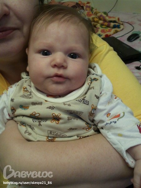 ХвастаемсяМоя прелесть сегодня с животика на спинку перевернулась первый раз!!! Такая умничкаааа!!!!))))))))) А еще на днях Сашенька заметила свои ножки))) Теперь шевелит пальчиками, смотрит на них внимательно и гулит)))