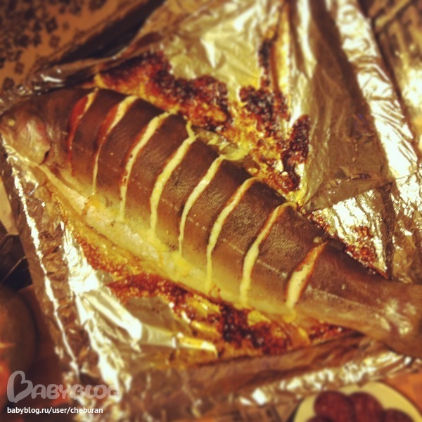 Приехав домой начали готовить праздничный ужин. Главным блюдом была вот эта форель