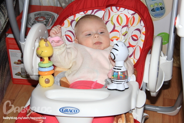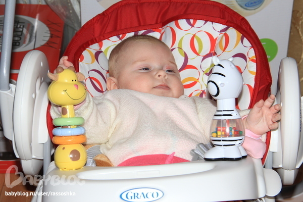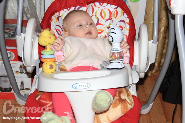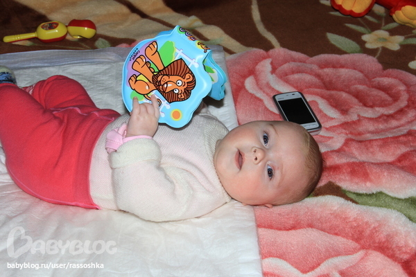 ХвастаемсяСашка уже совсем большая. Вчера взвесили 5900. Ловлю себя на мысли, что мне становится с ней легче. Спит Сашуня ночью хорошо, не просыпается, конечно, в зависимости от того, во сколько легла. Если ложимся в районе 23-24, то спим до 8-9 утра, потом кушаем и еще часа 2-3 досыпаем, причем, не укладываю ее, просто ложу и она засыпает. В часиков 12 встаем, кушаем, бодрствуем, качаемся в качельках (кстати, на днях приобрели, хорошая штука),лежим на коврике, любим, чтобы нас поносили на ручках, потом в районе 13-30 укладываемся, часок спим, кушаем, активничаем до 16, спим, потом снова кушаем... вечером как правило бодрствуем, потом купаемся с кругом(это отдельная тема, плаваем минут 20, зато потом едим и сразу баиньки))) сказать откровенно, времени свободного много, только я не умею его рационально использовать... вот все, что сделала сегодня, так это кушать приготовила, фотик почистила, убралась на кухне и в нете посидела.... а могла...))) Фотки Сашульки под катом.