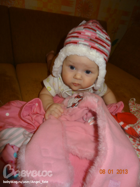 4)Мы очень вредные, и требуем ежесекундо к себе много внимания.. невозможно оставить ее на минуту.. не любм кроватку (как наказание для нас), шезлонг - хватает минут на 5, развивающий коврик на 3-4 минуты, на диване с игрушками дай бог 2 минуты посидит.. а так все ручки, ручки нам нужны.. надо все вокруг разглядывать..