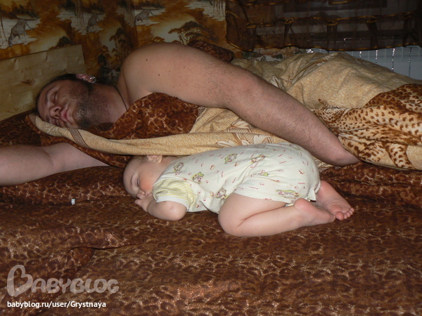 У нас папа не может спать с сыном, так как спит очень крепко и боится задавить, поэтому очень расстраивается, а так бы отнимал у меня и сам спал. А по мне, я была рада, когда он в кроватке спал