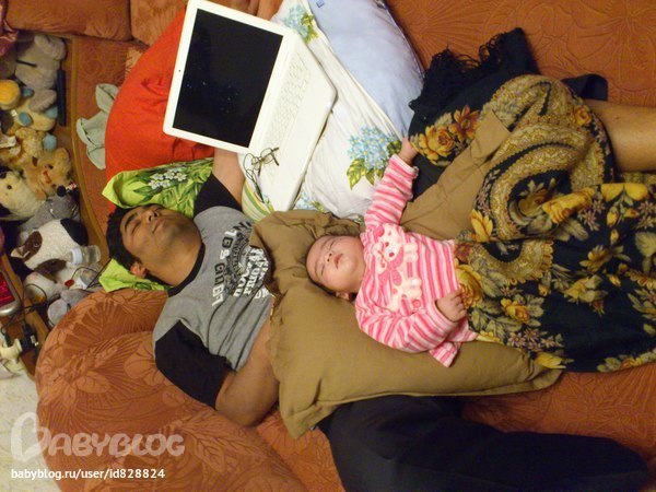 Какие смешные))) Доча помогла уснуть папе, а затем с чувством выполненного долга решила и сама отдохнуть)