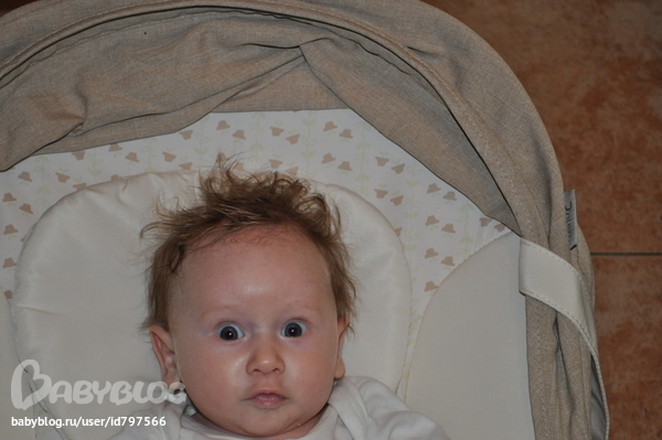 А дальше всё так же глядя на маму - был переворот. Но я уже почти опытная, бросила фотоаппарат и побежала подставлять руку, что бы не ударился