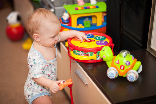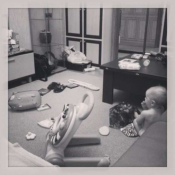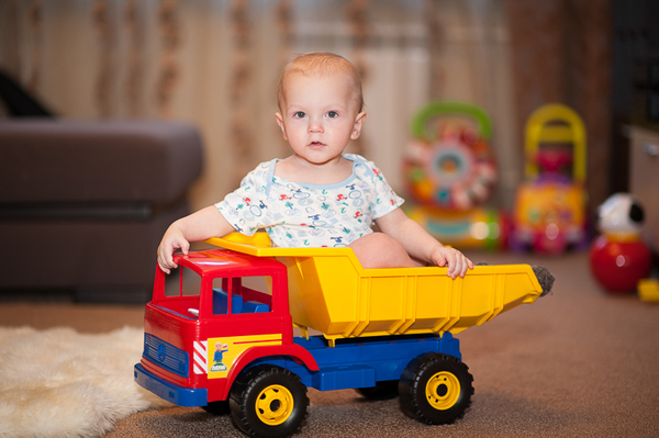 - из игр особо нового ничего нет - играет во все игрушки, но стал осознаннее нажимать на кнопки на них, иногда машет ручками под мелодии. Стал открывать и закрывать тюбики (что опасно), пытаться откручивать-закручивать баночки. В связи с этим я опять показала ему, как собирать пирамидку - заинтересовался (раньше показывала - не понимал, не нравилось, поэтому убирала на какое-то время). Палочкой, как шпагой)), нанизывает один из кружочков). Все так же выключает свет, любит поиграть в прятки и догонялки. Как-то недавно покрутила его на крутящемся кресле - теперь иногда сам подходит к нему и "просит" покатать, нравится). Полюбил себе делать "гнездышки" - залезает в свою маленькую ванночку, если поставить ее на пол, в таз для белья, в коробки из-под обуви), даже в кузов игрушечного грузовика)). Приносит себе туда игрушки и сидит там какое-то время). Правда, тоже не спокойно мне в эти минуты - потому как может неаккуратно вылезти, а однажды вместе с тазом полетел затылком на кафельный пол в ванной(();