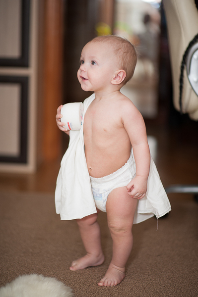 - ходит уверенно, почти бегает уже. Новость месяца - научился залезать на кровать - она не очень высокая, а на диван - он повыше - тоже получалось несколько раз. То есть в очередной раз моему спокойствию приходит конец)) - потому что слезать-то я его научила давно, но делает это он пока неаккуратно, я почти всегда страхую. Из-за этого в этом месяца 2 раза падал((( - один раз, сидя со мной на диване, стал крутиться и вырвался из моих рук, и я успела схватить только за ногу - а лбом приземлился об пол; второй раз не уследили бабушка с дедушкой - приземлился на живот, лишь немного ударившись лбом;