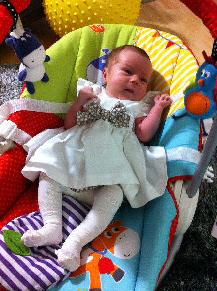 Пеленаться Амелька не взлюбила, кричали до тех пор, пока не одели в бодик)