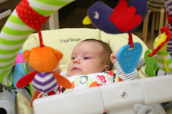 Мы на ГВ, кушает через каждые 2 часа в среднем, спит почти всю ночь (в 5-7 просыпается поесть) и потом еще до 9-10. Болтает на своем смешном), очень любит медведя, которые читает сказку на английском, пока переодеваемся на пеленальном, слушаем. Ближе к 3-м месяцам сама перевернулась со спины на живот, но делает эт очень редко. На боку часто лежит, спит. Улыбаемся всем, кто улыбается нам) Смеется в голос, когда мама целует в животик. Терпеть не может лежать в подгузнике, если только что сделали а-а))) сразу кричит и плачет). Купаться любит очень! Научила ее брызгать руками по воде, так теперь в ванне потопы))) Любит себя в зеркале, смеется, улыбается иногда начинает смущаться. Во всю таскает игрушки. Столбик любимая позиция на руках. Начали просвечиваться нижние зубы, один раз укусила меня деснами, защимила(( ждем когда вылезут. Соски-пустышки терпеть не можем, плюемся((