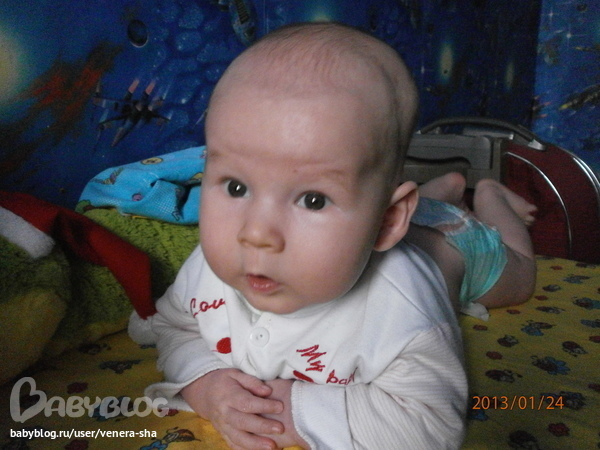 Физическое развитиеИз звуков - ага, агу, гуа, гоа, эй, пф, грррр и тд. Переворачиватся с животика на спину, а вот обратно пока не хочется что-то, зато во всю пытается сесть, и даже иногда психует что не получается, смешной таакой) Любит игрушки пинать, толкать, но в руки берет в основном грызунок в виде соски, и тряпочки(ползунки там, распашенки, полотенце), а вот погремушки долго не задерживаются в руках. И чем его так привлекают эти тряпочки..